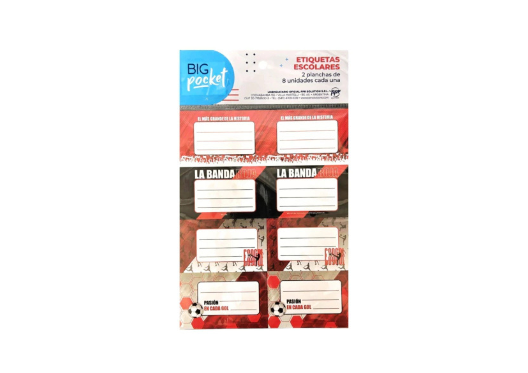 Etiqueta escolar x16u Futbol rojo PPR-BIG LIFE cantidad