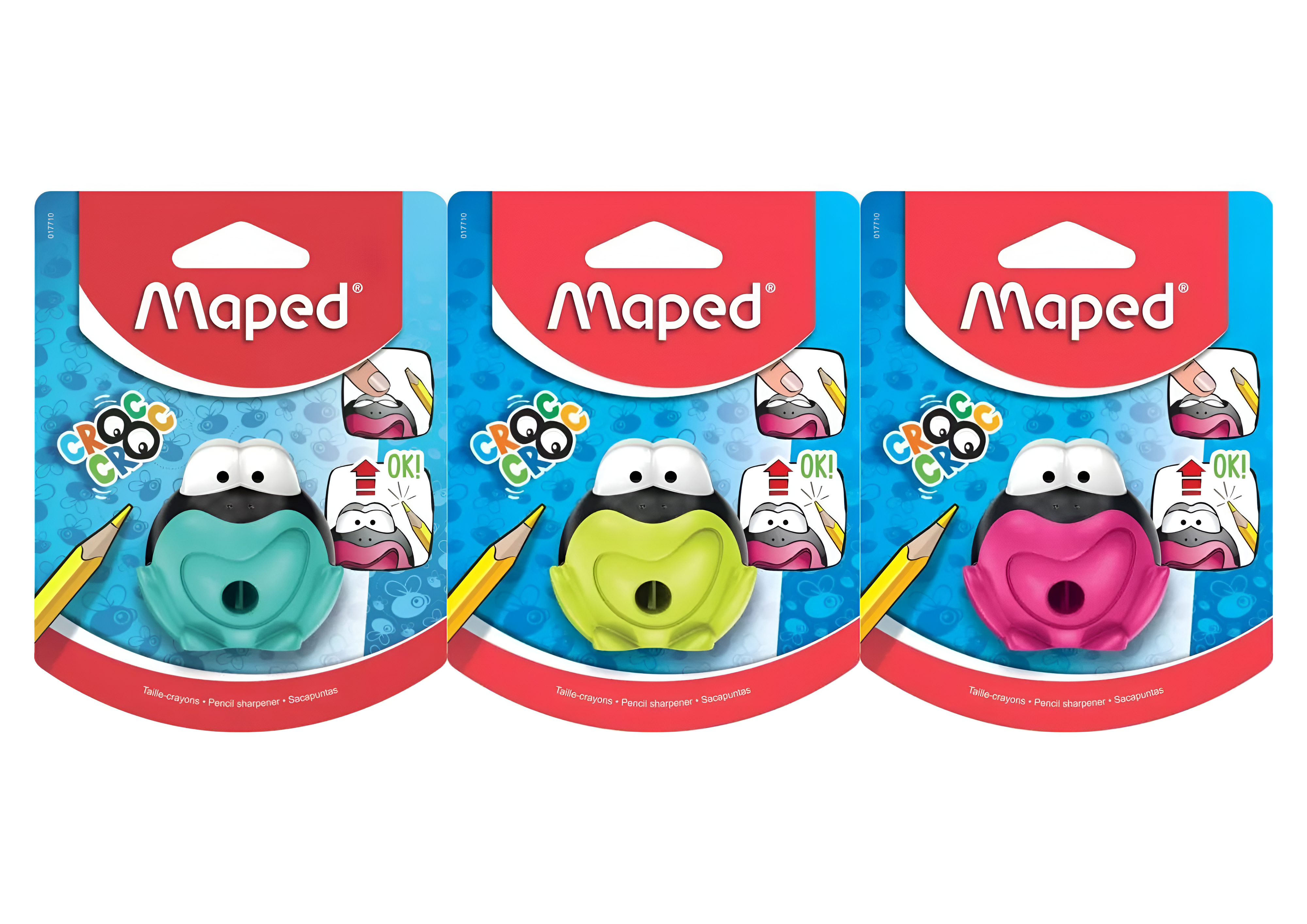 Sacapuntas plastico sapo croc croc con estuche MAPED