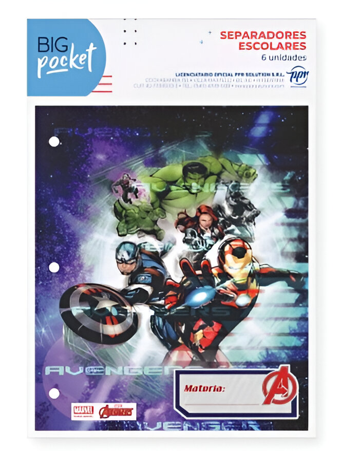 Separador escolar n°3 x6u Avengers PPR-BIG LIFE cantidad